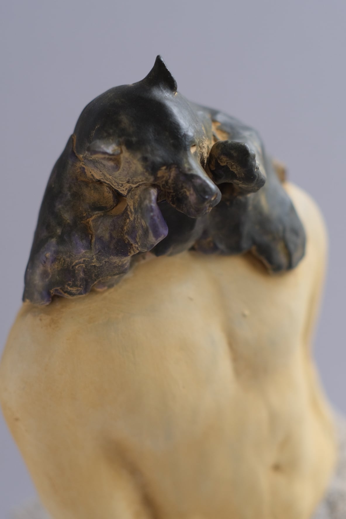 粘土で造形し900℃で焼成、着彩を施した作品です。